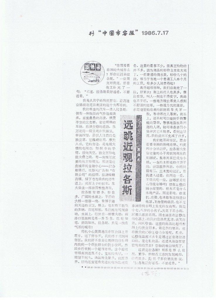 这就是拉各斯! 粗看是那么壮观、繁华,但细看又感到发展畸形,疮痍甚多。无怪乎那位朋友要说:“拉各斯最好远看,不要近看。”