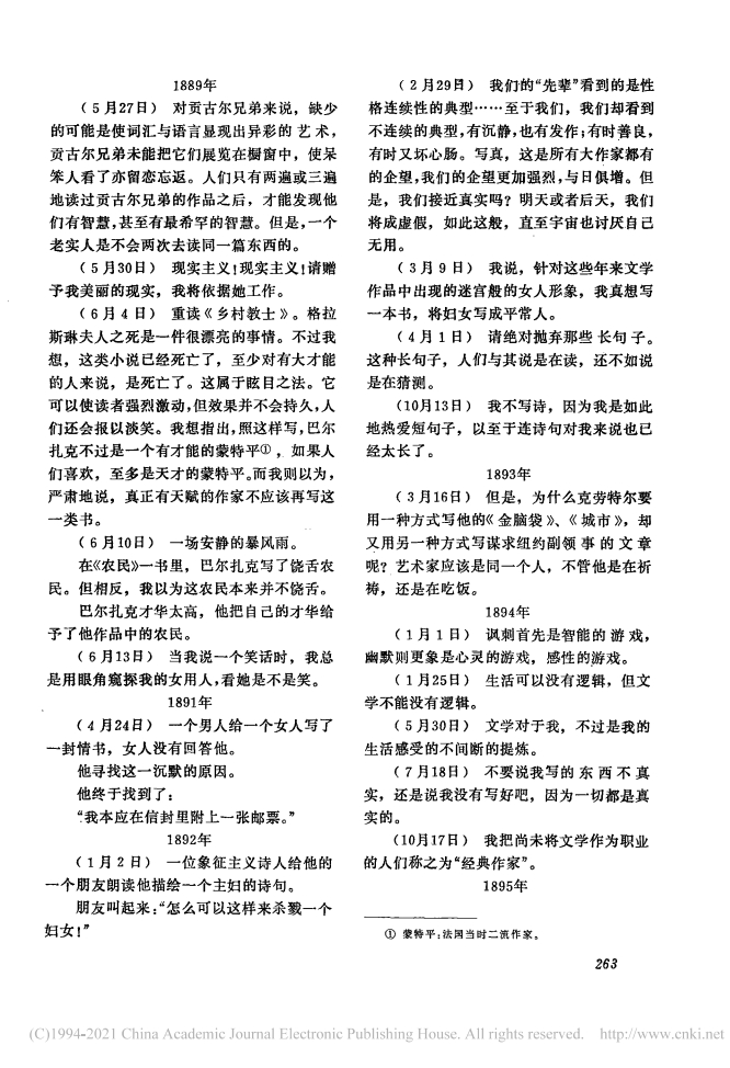 (5月27日)对贡古尔兄弟来说,缺少的可能是使词汇与语言显现出异彩的艺术,贡古尔兄弟未能把它们展览在橱窗中,使呆笨人看了亦留恋忘返。人们只有两遍或三遍地读过贡古尔兄弟的作品之后,才能发现他们有智慧,甚至有最希罕的智慧。但是,一个老实人是不会两次去读同一篇东西的。