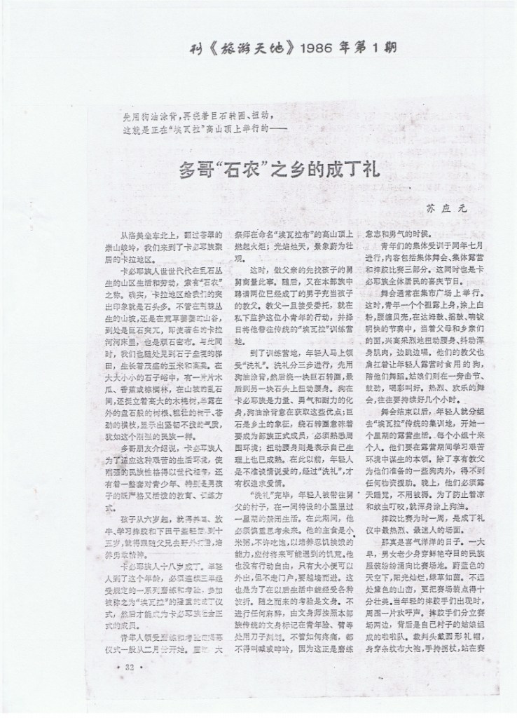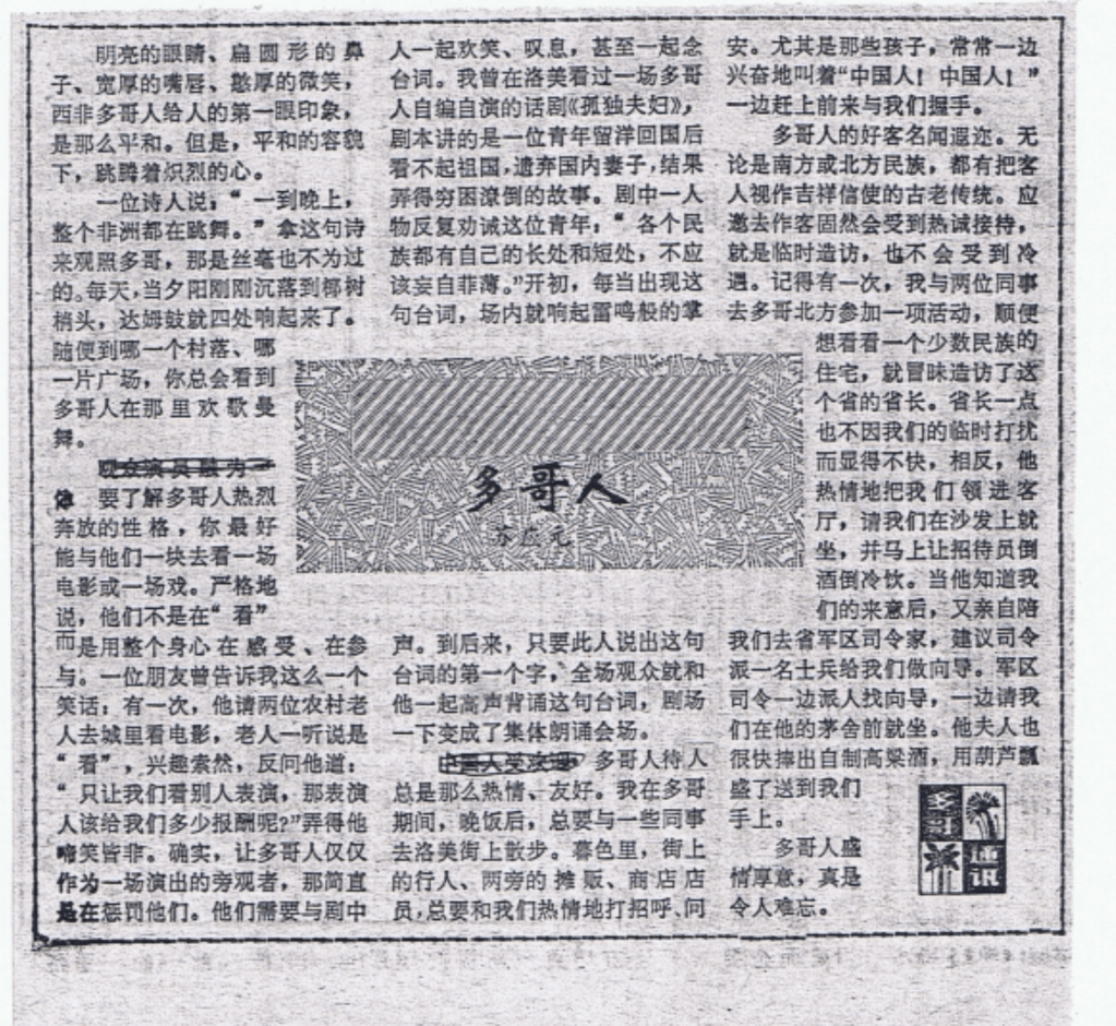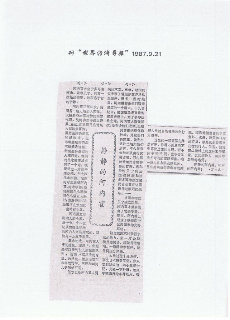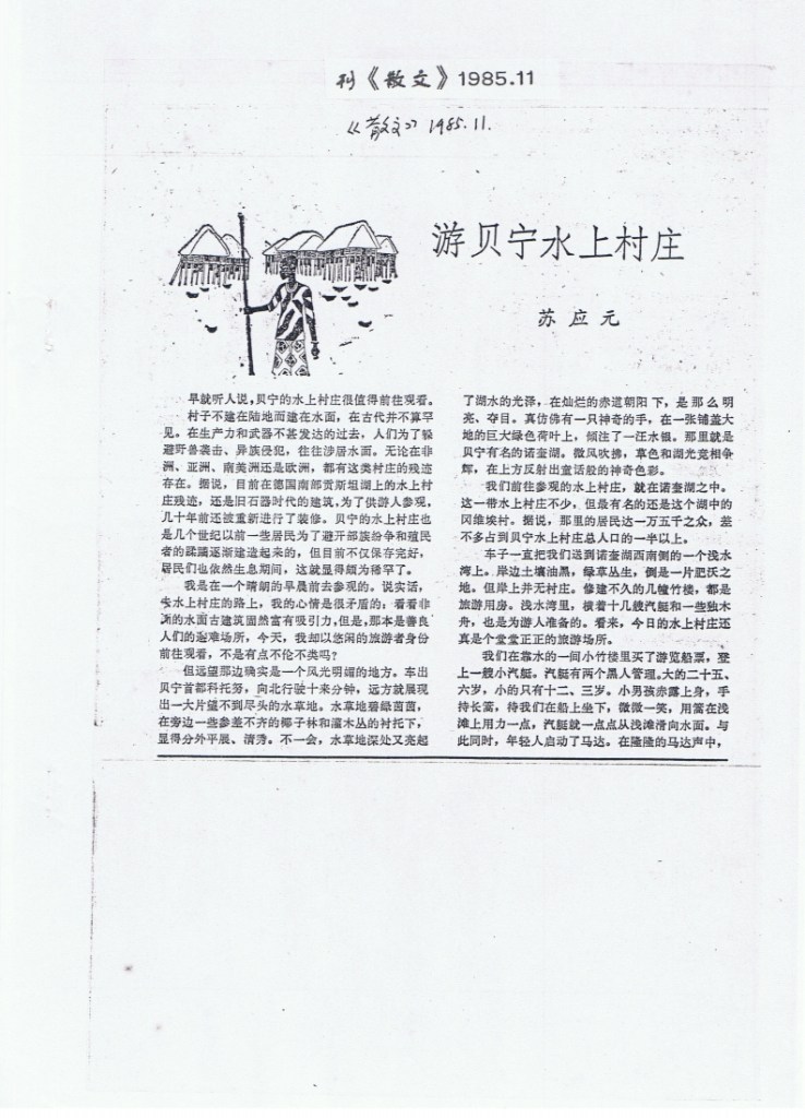 1985游贝宁水上村庄刊《散文》1985年11月