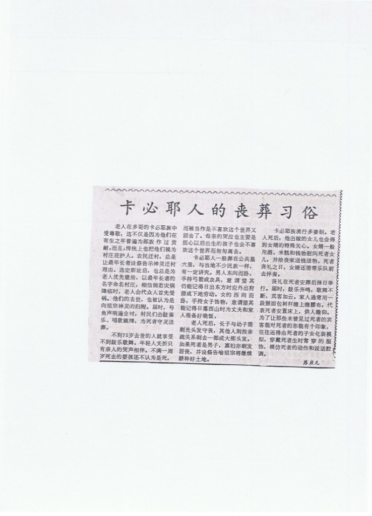 老人死后,长子与幼子需剃光头发守丧,其他人則按亲疏关系剃去一部或大部头发。如果死者是男子,寡妇亦剃发居丧,并设祭告喻祖宗将继续耕种好土地。