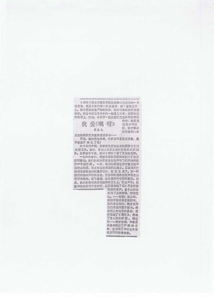 一九六六年初,我国云南杂技团到老挝川圹地区访问演出。他们的表演经常是在炮声和飞机炸弹的轰炸声中迸行的。一次,演出台就搭在康开镇北边不远的山凹里,覌众则坐在周围的山坡上。正当演员们表演难度极髙的倒叠罗汉时,敌机又来了。第一阵凄厉的俯冲声刚刚过去,炸弹和机枪的扫射声就在山背后响起来。鸟飞兽惊,山林里树叶子纷纷震落。但是,我们的杂技演员却继续倒立台上,纹丝不动,当轰炸和扫射终于过去时,山凹里响起了经久不息的雷鸣般的掌声。整个山林在斜阳下金碧辉煌,绚丽无比。……奇怪!这山林、 斜阳不是早就在跟前吗,但只有在这时,我才发现它们是这样富于魅力。我感到从未有过的激动,突然想起了《嘱咐》,想起了迷人的白洋淀,滹沱河……我感悟到,作家正是亲身经历了严酷的斗争,才发现了平时也许很难发现的诗倩画意。