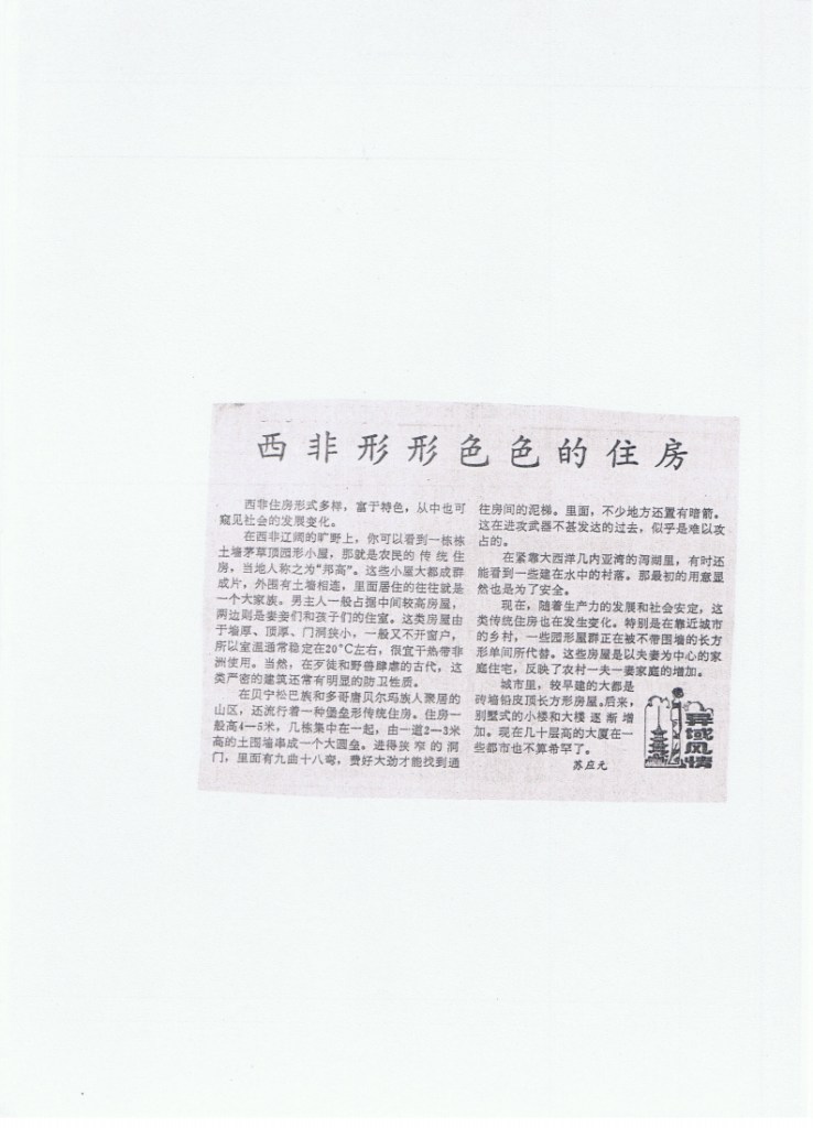 西非住房形式多样,富于特色,从中也可窺见杜会的发展变化。