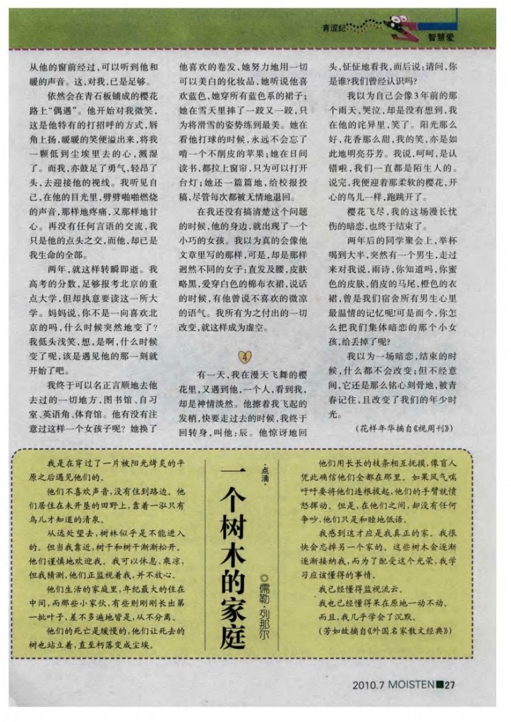 《初中生世界:七年级》2010年26期 选自《外国经典美文》青海人民出版社2004年