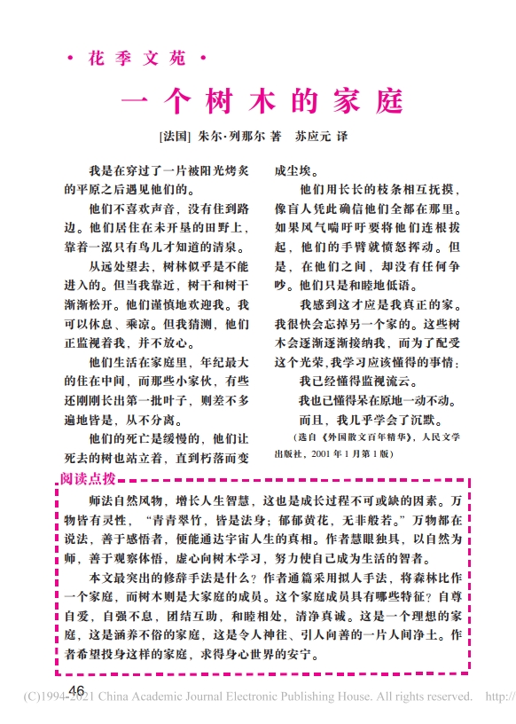 阅读与鉴赏(初中版)》 2005年10期 选自 《外国散文百年经典》2001年版