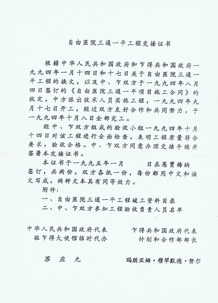 1995年 自由医院三通一平工程交接证书 (工作文稿)