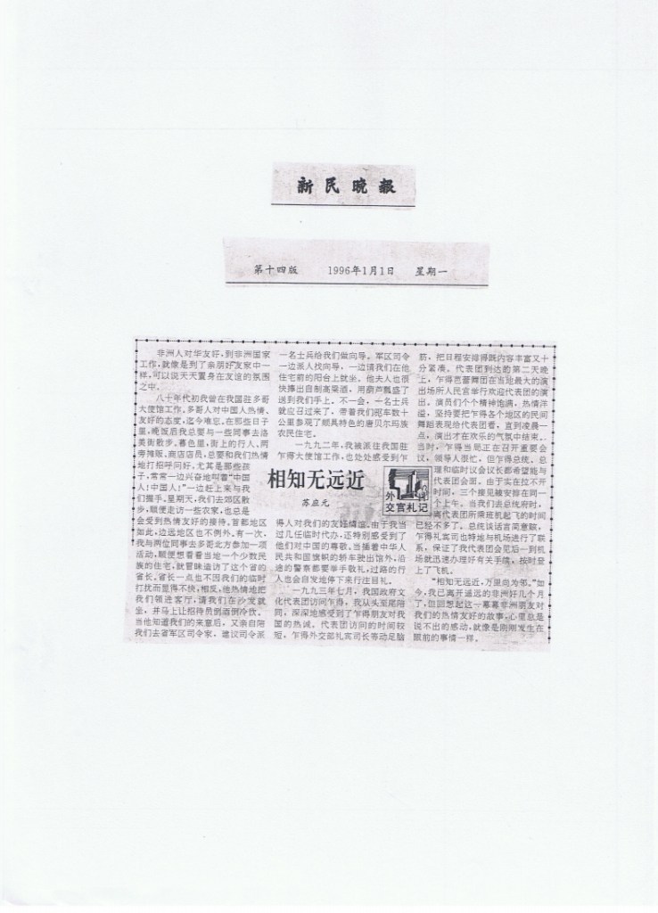 一九九二年,我被派往我国驻乍得大使馆工作,也处处感受到乍得人对我们的友好情谊。由于我当过几任临时代办,还特别感受到了他们对中国的尊敬。当插着中华人民共和国旗帜的轿车驶出馆外,沿途的警察都要举手敬礼,过路的行人也会自发地停下来行注目礼。